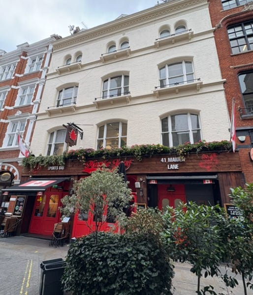 Het was te danken aan de aanwezigheid van Voltaire, de Franse verlichtingsdenker die tussen 1726 en 1729 in Londen verbleef. Het grootste deel van deze periode woonde hij in Wandsworth, maar tussen december 1727 en juni 1728 huisde de Franse filosoof aan Maiden Lane, in een woning die plaats heeft gemaakt voor iets moderners, hoewel minsten anderhalve eeuw oud. Voltaire was regelmatig te vinden in de tegenovergelegen pub The Bedford Head.